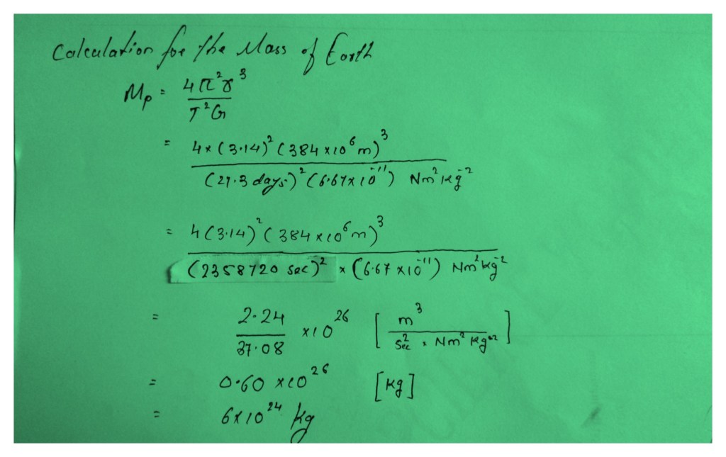 My friend, I don’t know about your bizarre expressions but really this is a very very very😮 huge number and then after knowing this num- ber I just started doing research and research🧐 for the calculation of this massive mass of earth and of different planets as well. Even I searched in many books but I didn’t get the whole steps of calculations, then I started doing some calcula-tions of my own and finally got some answer and guys this value is just like magic for me because it gets the exact match with the standard value😃. I know many of you have heard or calculatede mass of earth by using the formula F=GMm/R^2 but this formula is not applicable for all the planets because we don’t know the force of attraction or the value of “g” of that planet😟